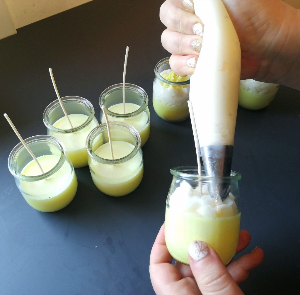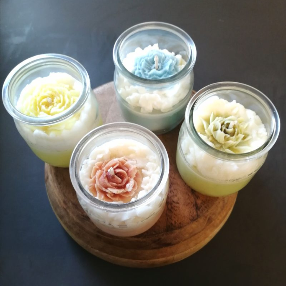 Cire de soja sans OGM, poudre de plantes pour la coloration, fragrance de Grasse sans CMR ni phtalates.