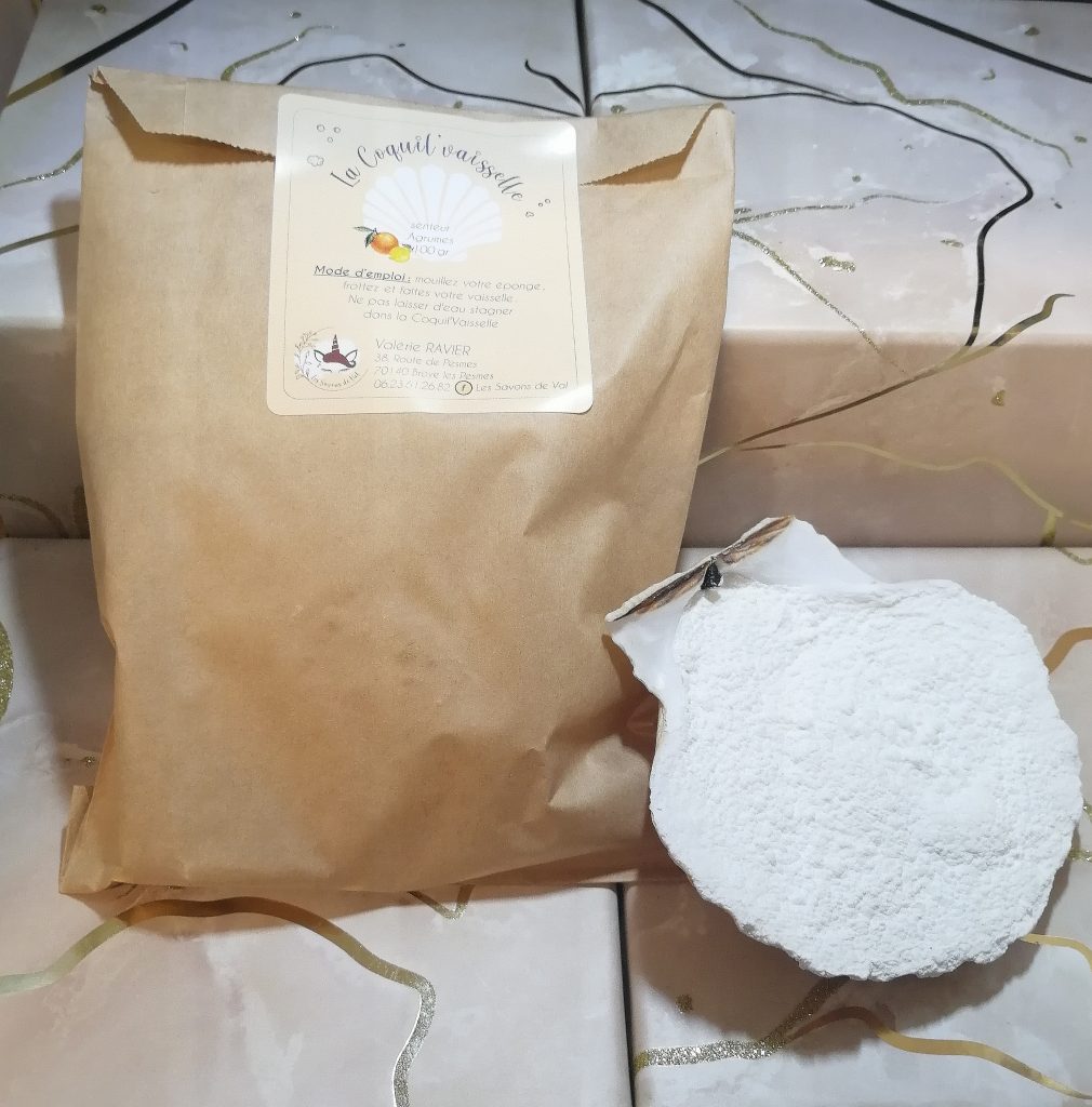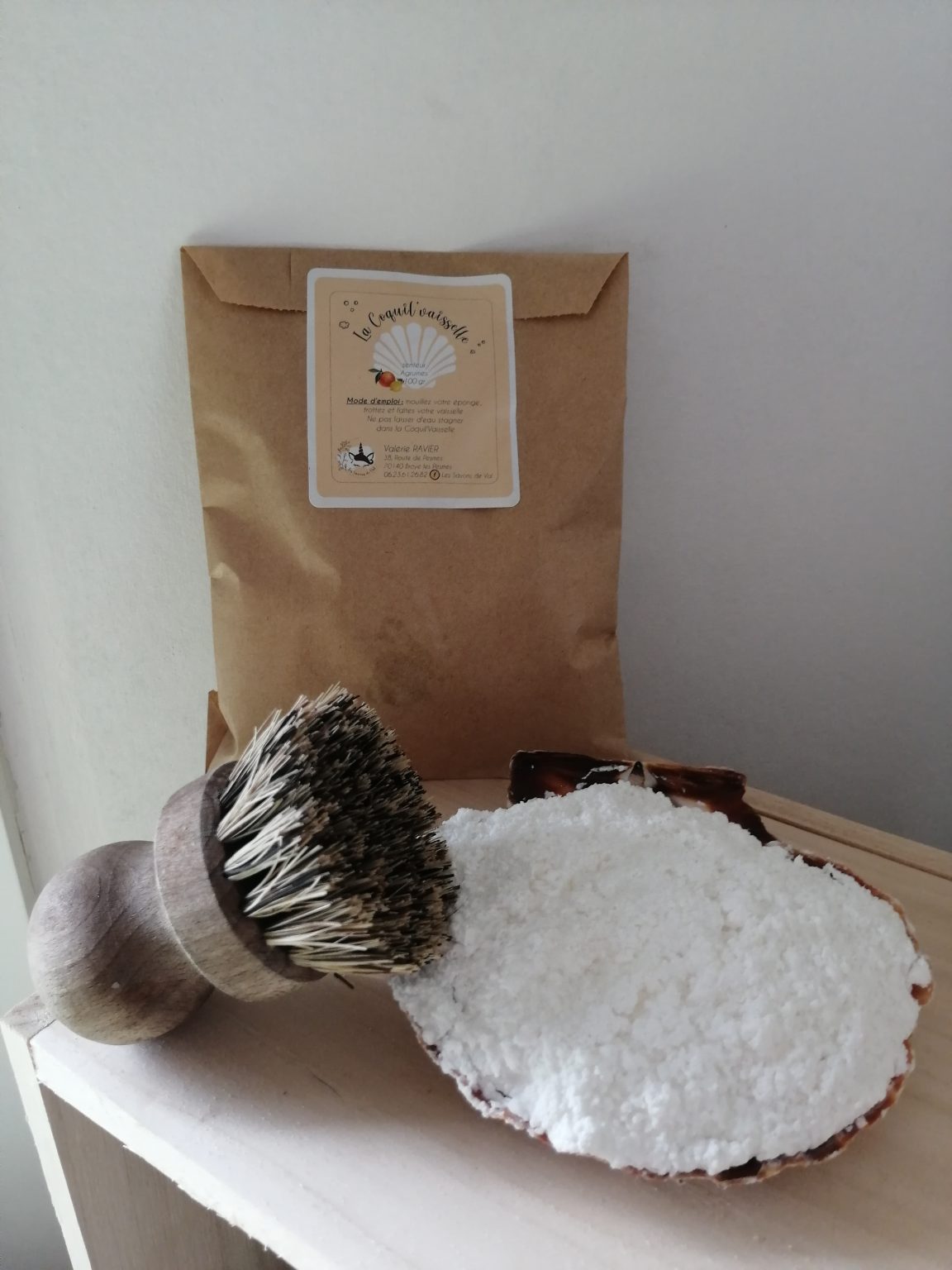 Frotter une éponge humide directement sur la Coquil’ puis laver la vaisselle. Peut être utilisé à l’eau chaude comme à l’eau froide.