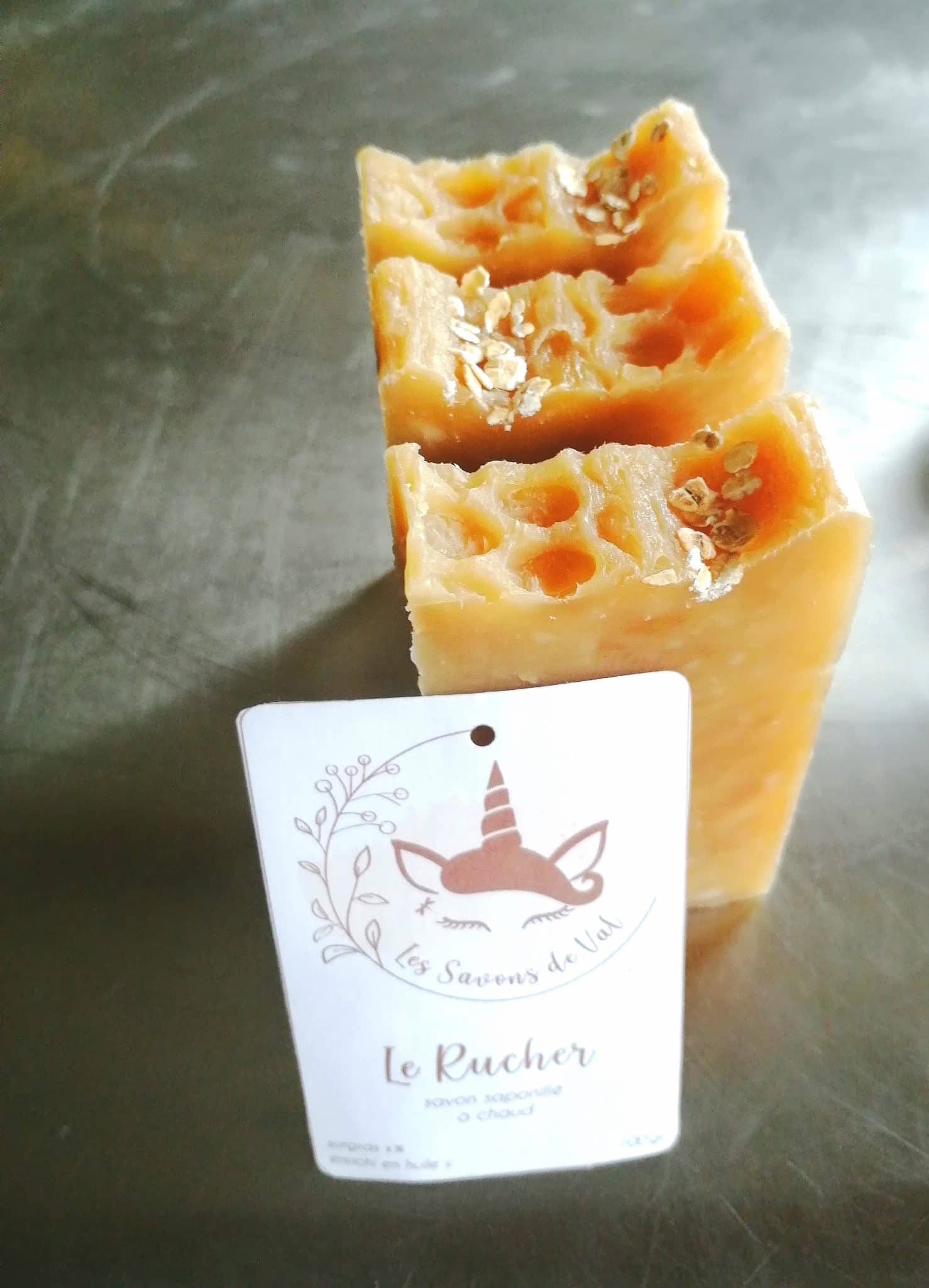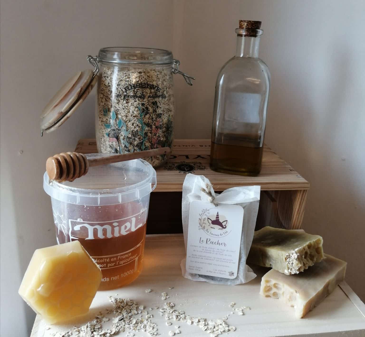 Le Rucher est un savon artisanal au lait d’avoine fabriqué selon la méthode à chaud. Conçu pour les peaux sensibles, il nettoie en douceur tout en apportant confort et réconfort au quotidien. Sa composition associe huile d’olive bio, huile de coco bio, beurre de cacao brut bio et huile de ricin, puis est enrichie après cuisson avec un macérât solarisé de calendula, du lait d’avoine, de la cire d’abeille et du miel. Son parfum miel et lait d’avoine lui donne une senteur douce et enveloppante. Adapté pour les mains et le corps, il convient aux adultes comme aux enfants à partir de 3 ans.