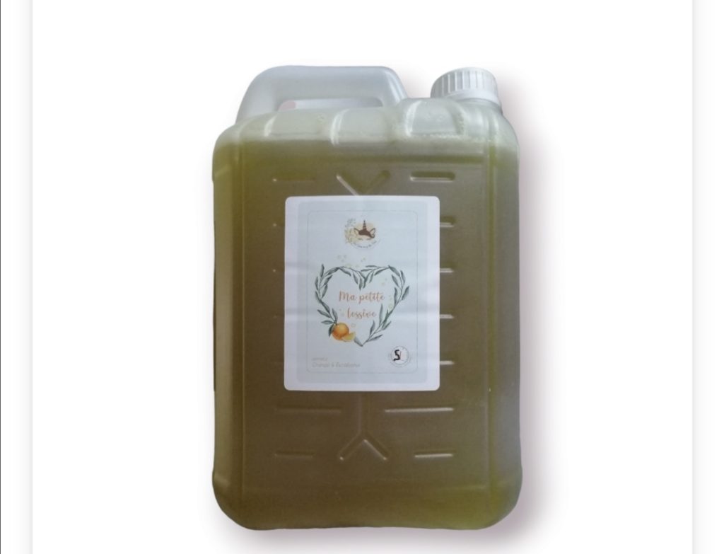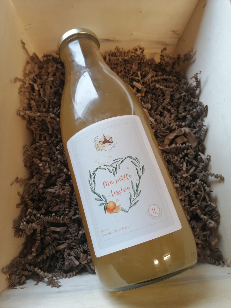 Ma Petite Lessive est une lessive naturelle fabriquée à base de savon mou, conçue pour nettoyer efficacement le linge tout en limitant les produits issus de l’industrie chimique. Sa fabrication repose sur une base de savon mou obtenu à partir d’huile d’olive bio et d’huile de coco bio, puis dilué pour obtenir une texture gel agréable à utiliser. Parfumée à l’orange et à l’eucalyptus, elle laisse une odeur fraîche sur le linge. Une bouteille d’un litre permet de réaliser environ 20 lavages. Grâce à son format en verre consigné, elle s’inscrit dans une démarche écologique et durable.